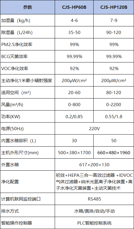净化除酸型除湿加湿一体机有CJS-HP120B和CJS-HP60B两款,可适用于档案库房、档案馆、档案室、博物馆、资料库、银行金库、实验室、化验室、仪器仓库等重要场所,前者适用面积稍大120㎡左右,后者适用面积60㎡左右。