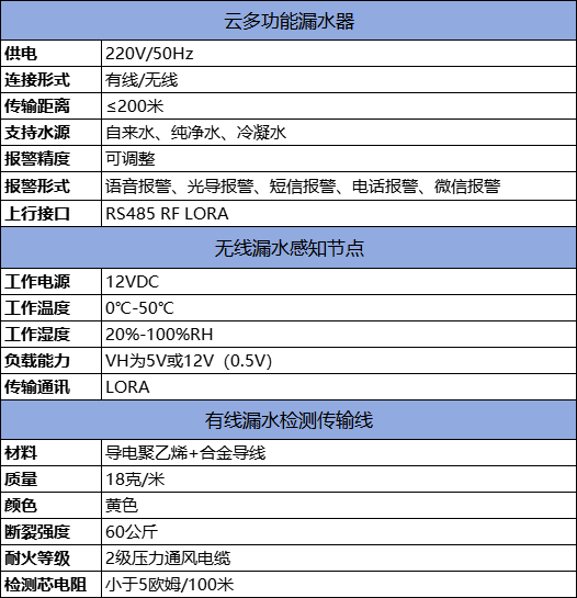 漏水报警监测系统规格参数: