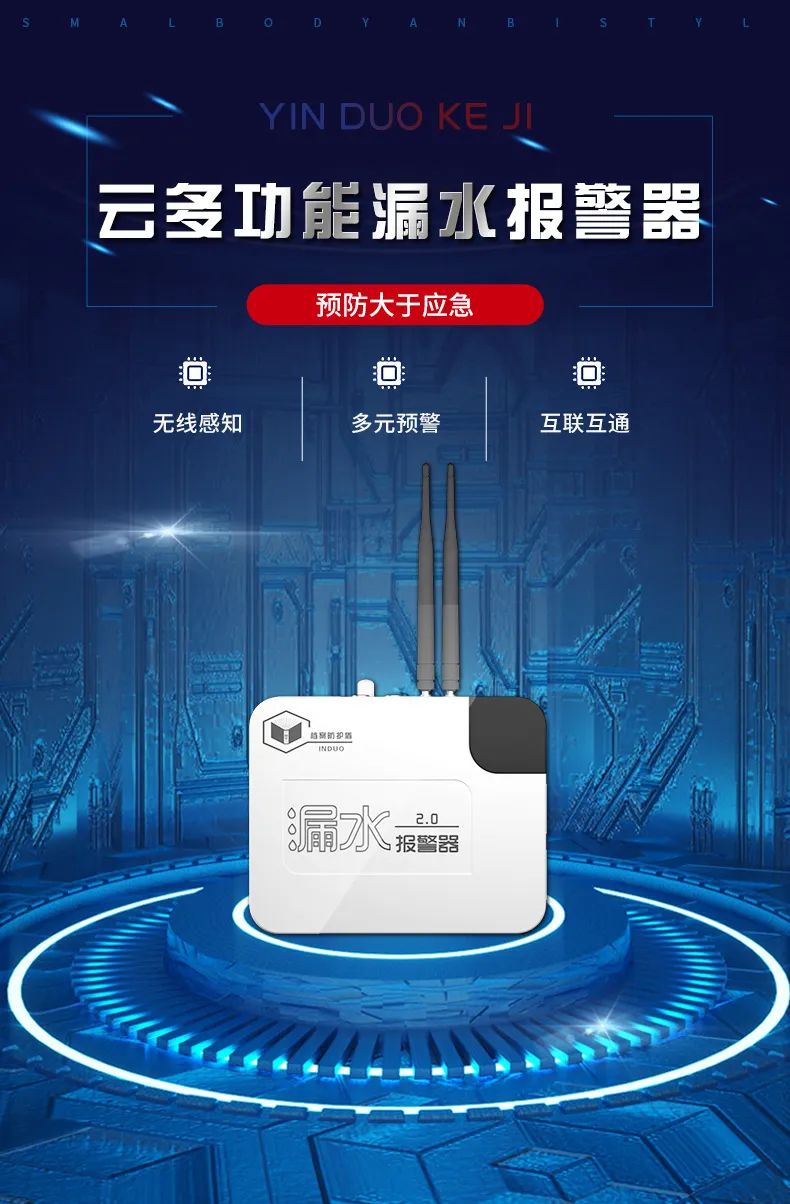 ◎光导报警:当设备接触到水源时,云多功能漏水报警器会发出光导报警,让工作人员依据光线源快速赶到漏水地点,及时处理漏水事故。