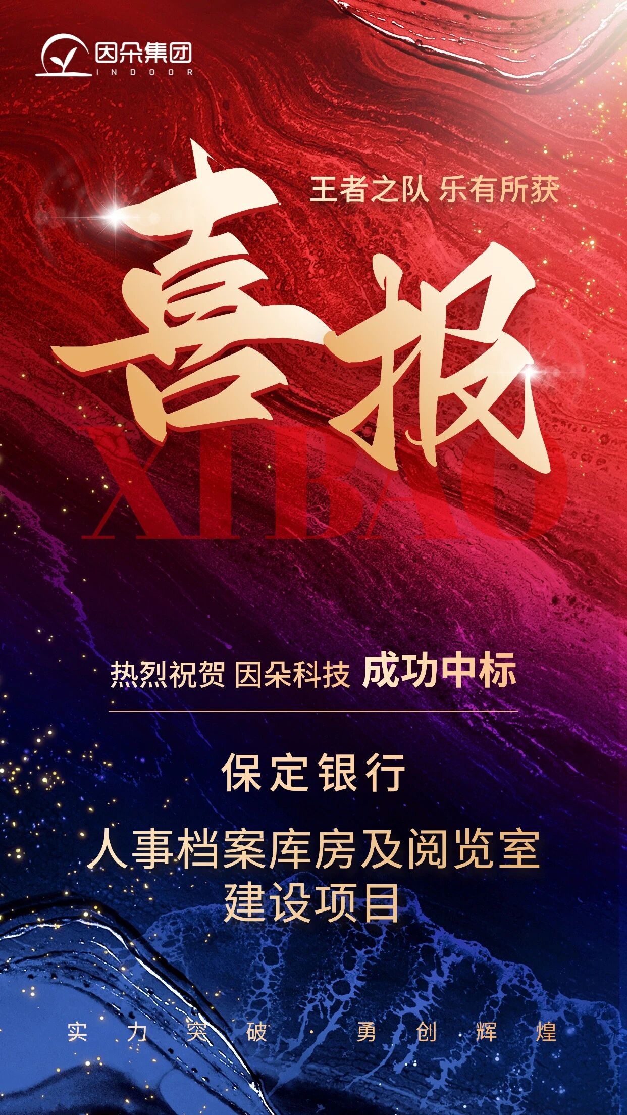 喜报|因朵科技成功中标保定银行人事档案库房及阅览室建设项目
